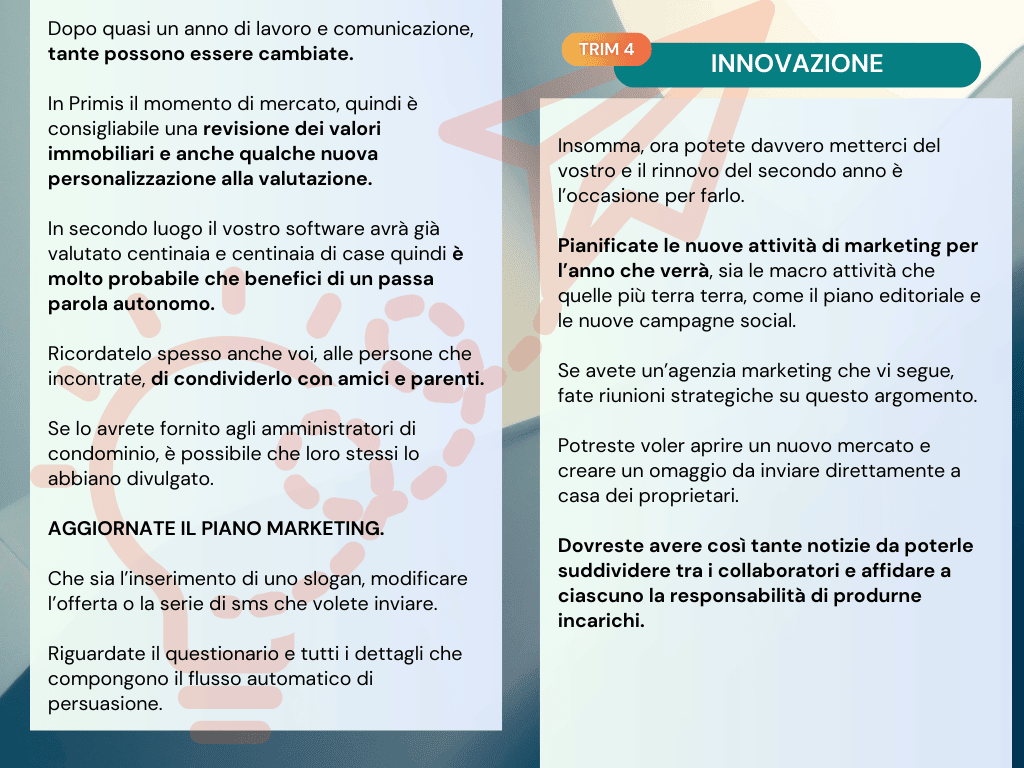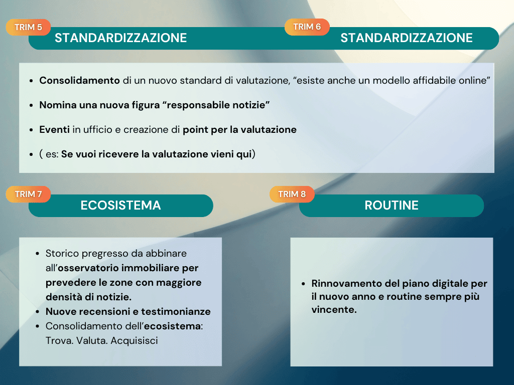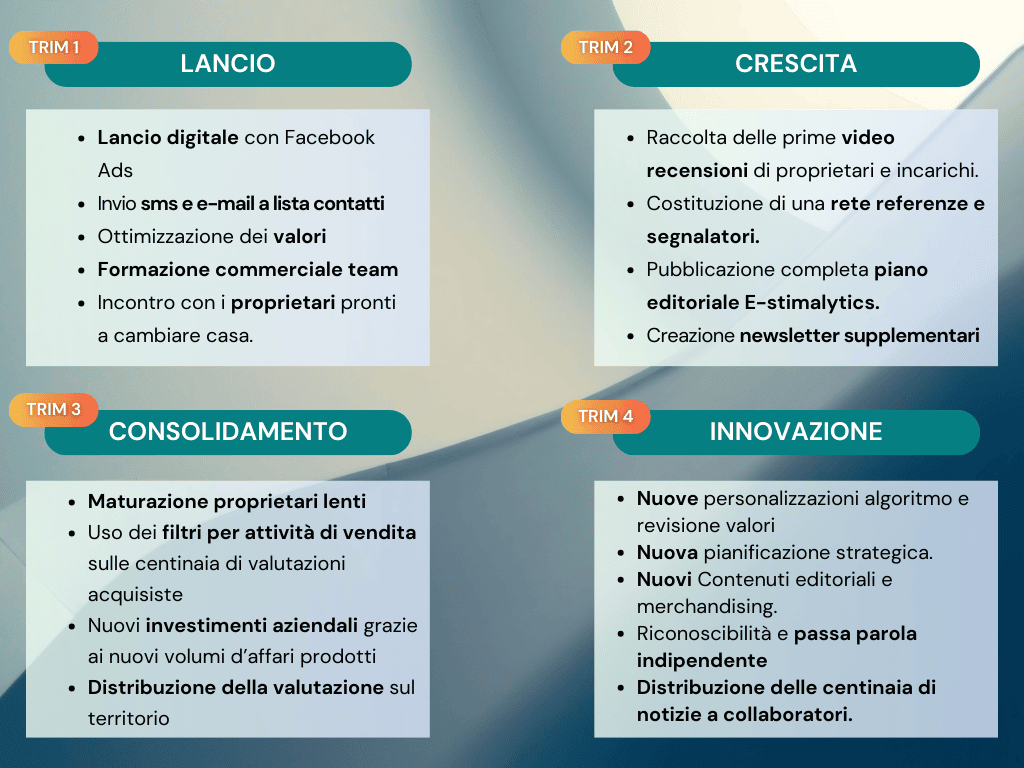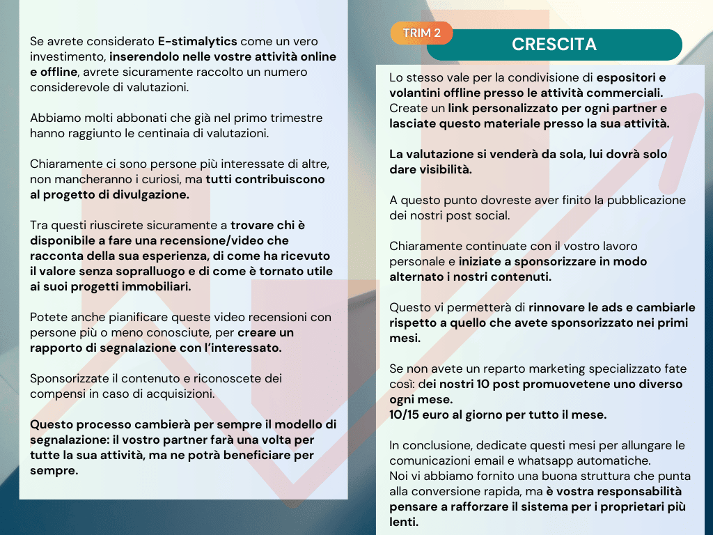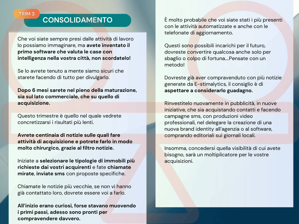 Il Titolare si impegna a fornire strumenti tecnologici e supporto tecnico e strategico per agevolare le attività dell’Utente, ma non garantisce il conseguimento di risultati economici, commerciali o di acquisizione immobiliare.
