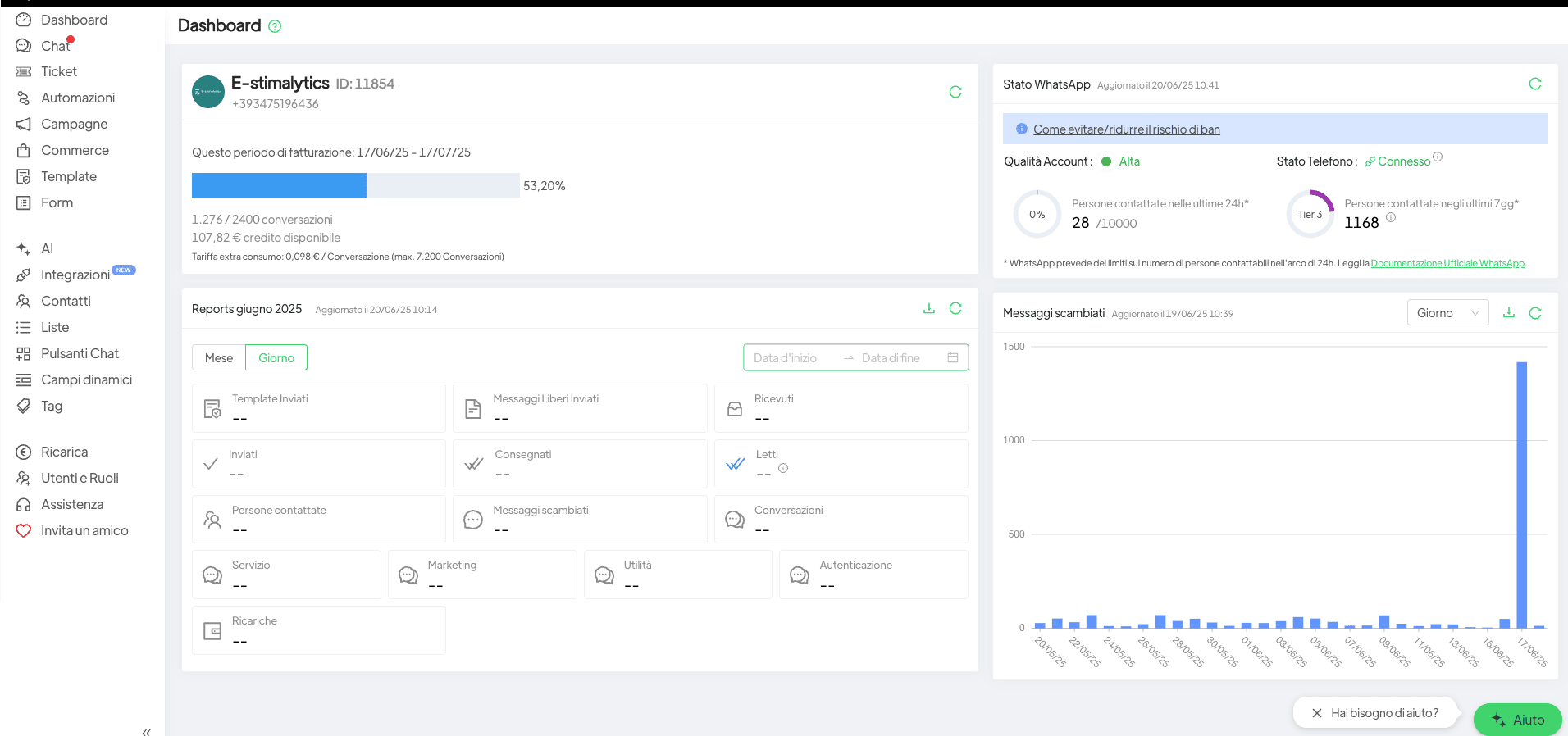 Il Titolare fornisce assistenza tecnica di primo livello all’Utente tramite i canali ufficiali (e-mail o ticket), dal lunedì al venerdì, in orario d’ufficio.